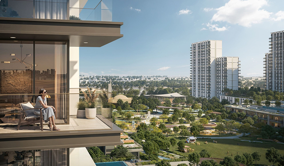 Elo 2. Damac Hills 2 Modern 1 and 2-bedroom apartments with high-quality fittings and balconies, providing clear views of the master community.
